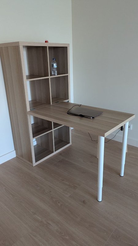 O trabalho incluiu a montagem de uma secretária moderna, perfeita para um espaço de trabalho ou estudo. Com atenção aos detalhes, garanti que todas as peças estivessem firmemente encaixadas e alinhadas, resultando numa estrutura robusta e estável.