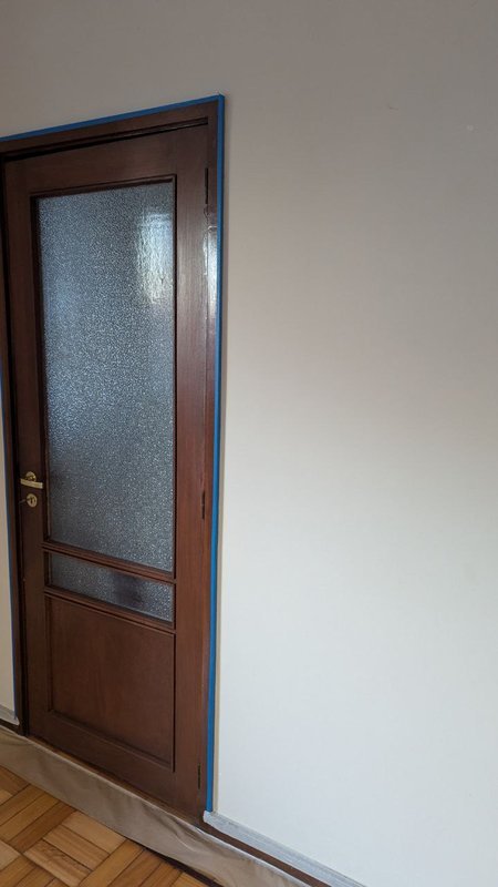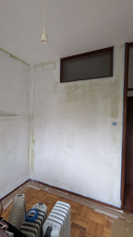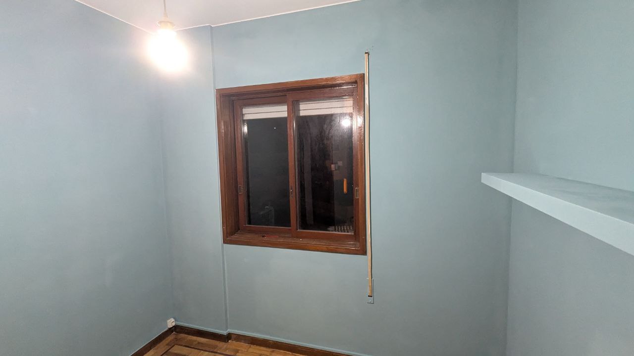Além da pintura, realizei pequenas restaurações na janela e na maçaneta da porta. Também procedi à substituição de candeeiros e tomadas, assegurando que toda a parte elétrica estava funcional e em conformidade. O apartamento ficou renovado, pronto para ser entregue e com a certeza da devolução da caução