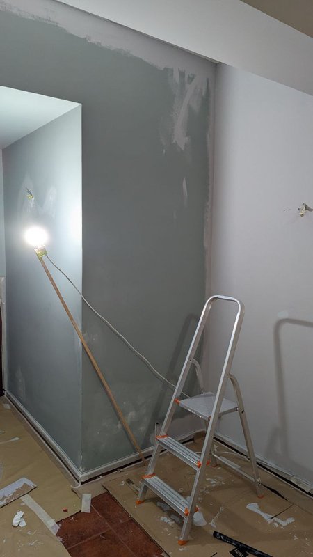 Recentemente, concluí um projeto de vários dias em Vila Nova de Gaia, focado na modernização da iluminação e revestimento de uma parede. A minha intervenção começou com a instalação da cablagem para a iluminação LED no teto e para duas lâmpadas laterais, garantindo uma distribuição de luz eficiente e acolhedora.