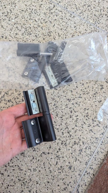 O segundo projeto, mais complexo, foi a porta de entrada de um edifício. As dobradiças estavam partidas, a mola de porta batia e a fechadura eletromecânica não abria via intercomunicador. Eu substituí as dobradiças por novas e ajustei a mola de porta para um fecho suave e seguro.