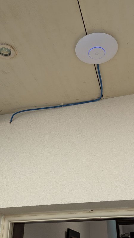 Para alcançar este nível de estabilidade e cobertura, optei pela instalação e configuração de três pontos de acesso Ubiquiti UniFi. Esta tecnologia permite criar uma rede mesh, onde a transição entre os pontos de acesso é totalmente transparente, garantindo que os dispositivos estejam sempre ligados ao sinal mais forte, sem interrupções.